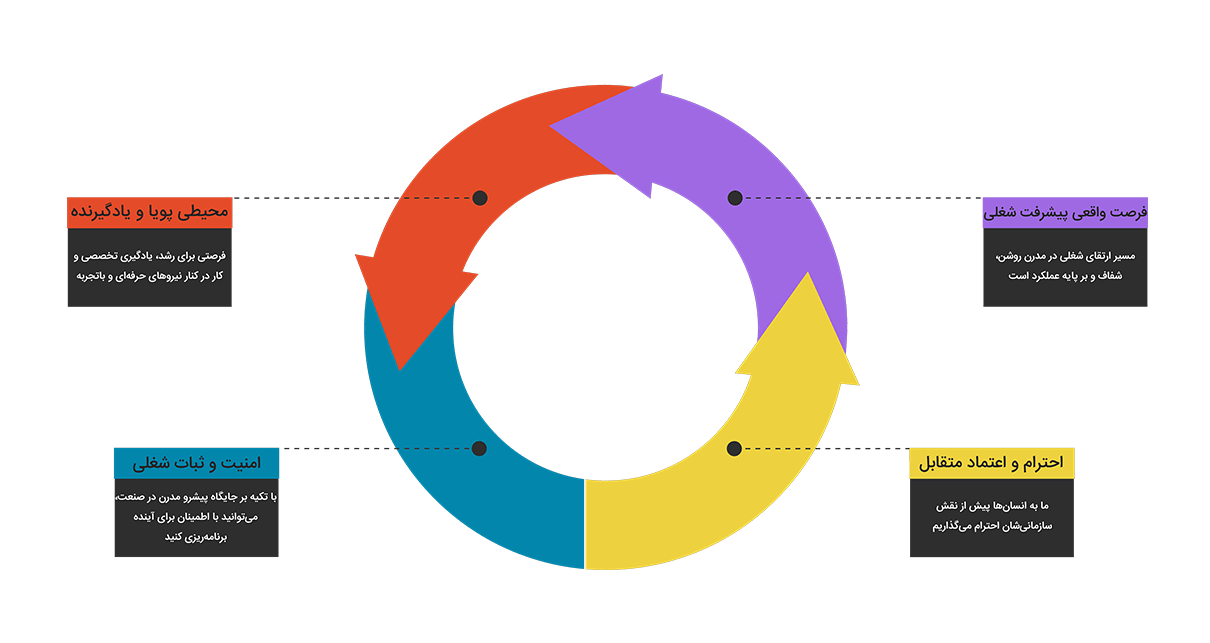 • حمایت از ایده‌ها و خلاقیت فردیفضای کار ایمن و استاندارد صنعتیمزایای غیر نقدی